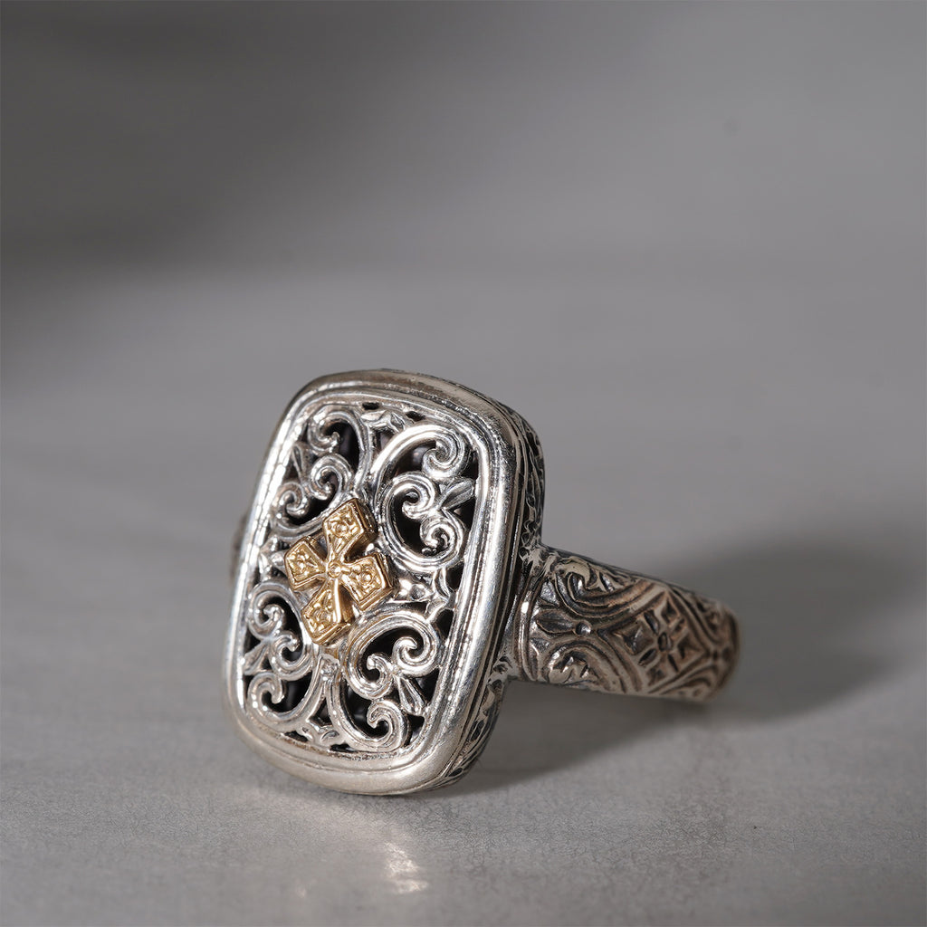 Gerochristo / Monastiraki Cross Pattern Square Ring GR001