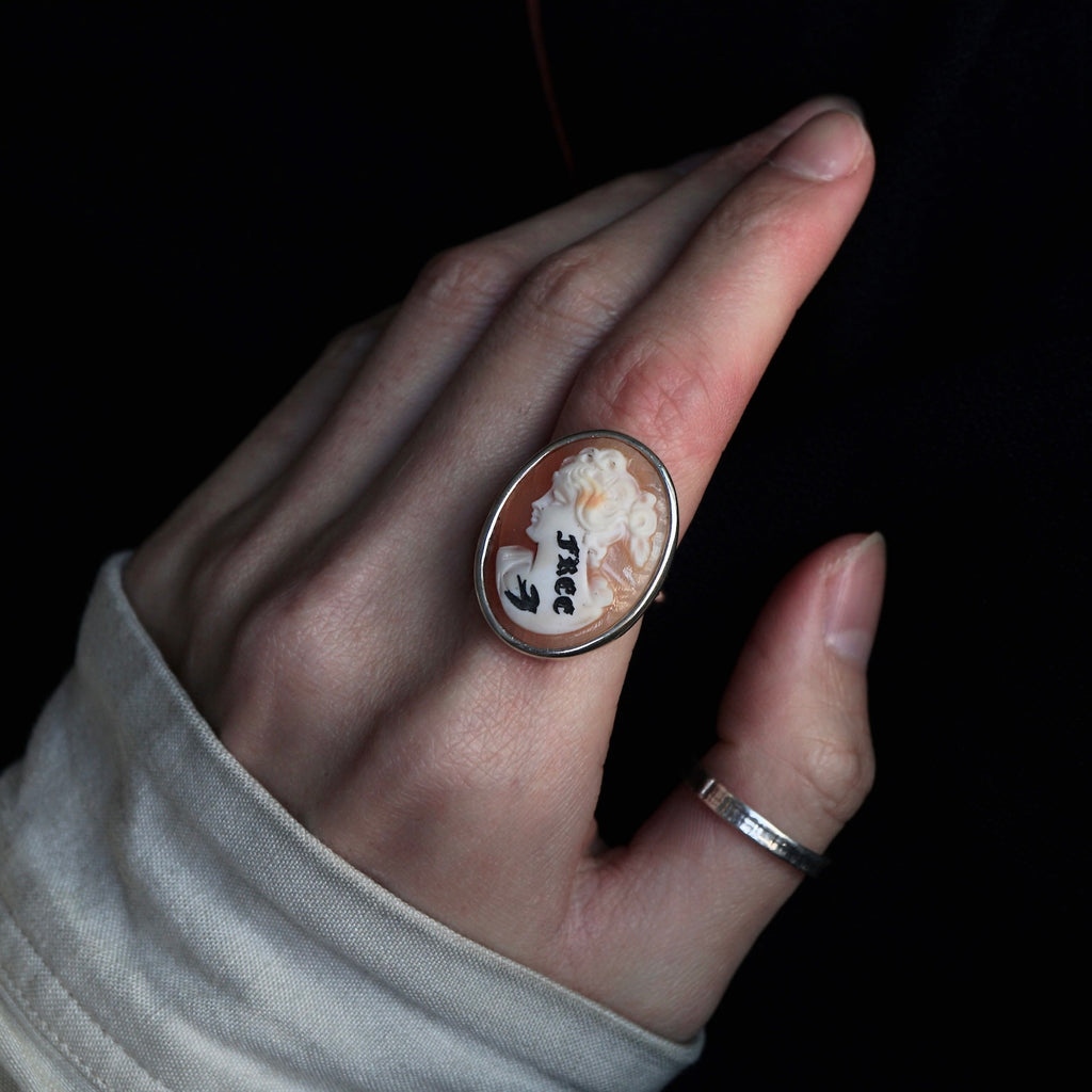 アンティークカメオから型取りし金属で再構築したジュエリー。