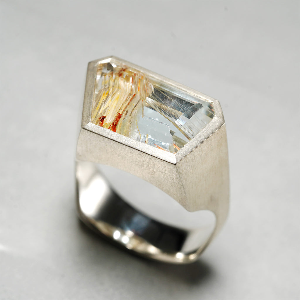 建造物のようなデザインはシルバーを用いてNEPHならではのシャープな造形をより自由な構成でリングに仕上げています。